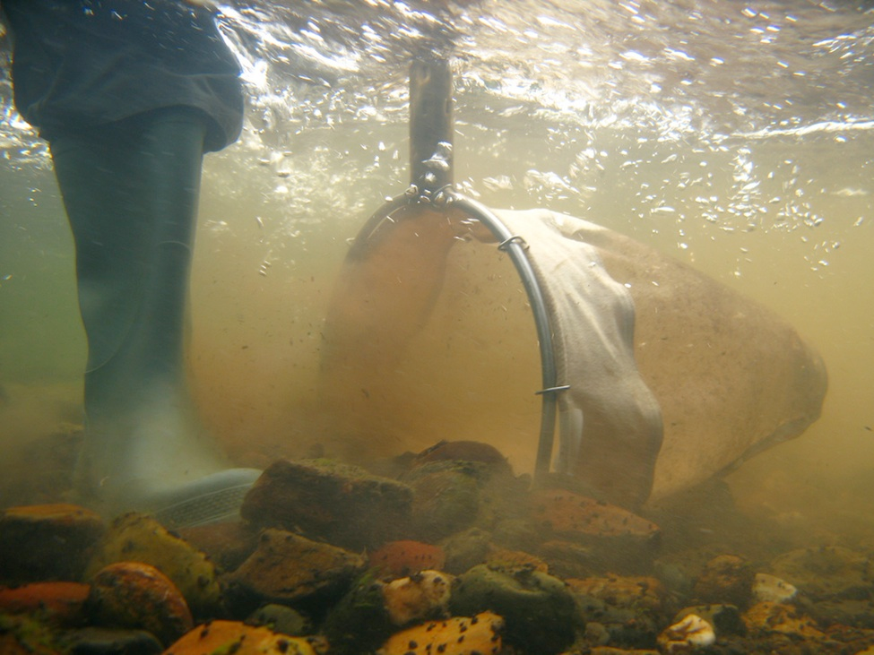 • Kick sampling is used to study in organisms in river beds/banks. The river bank is kicked for a period of time and a net is used to collect samples downstream.