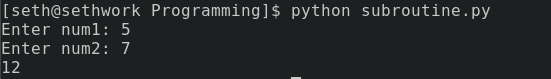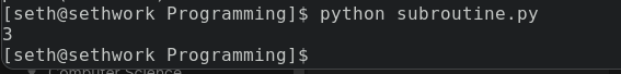 When this code is executed, it will return the literal 3. This is because we pass the values 1 and 2 to the subroutine, which then adds them together. The answer is printed out because we save the result in a variable and then display it with the print command.