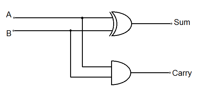 • The ALU in a CPU uses a half-adder logic circuit for performing the binary addition of two bits.