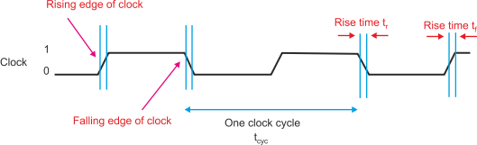 • A clock signal synchronises the components in sequential circuit. A positive-edge triggering clock signal is given below. The output responds to the changes in the input only at the positive edge of the clock pulse.