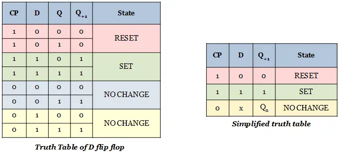 • The output Q follows the input D at the positive edges of the clock pulse.
